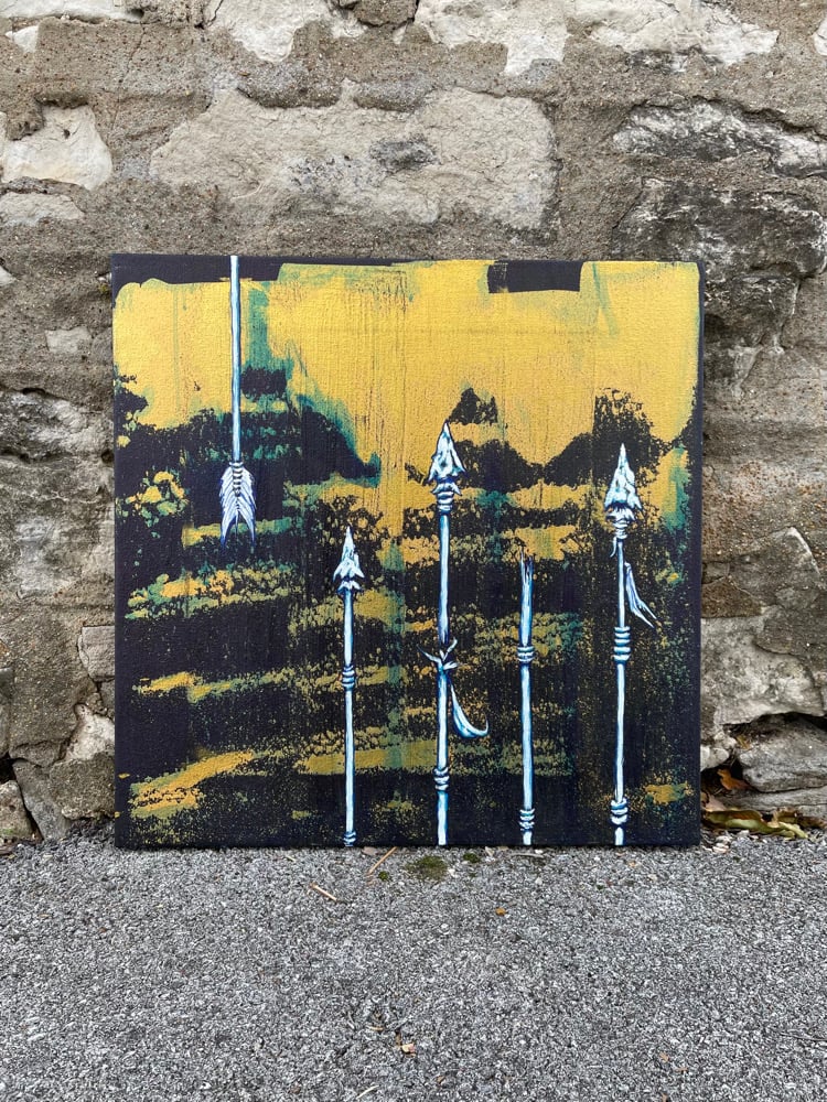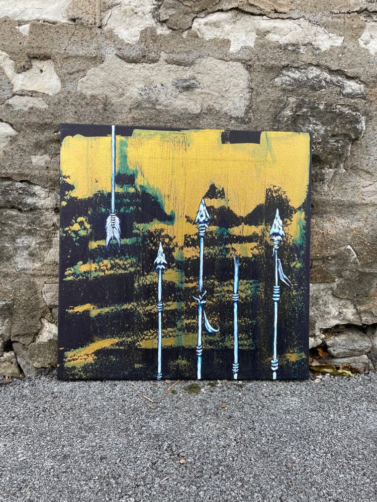 Four with heart - 24”X24” acrylic and enamel on black canvas - 2025.
