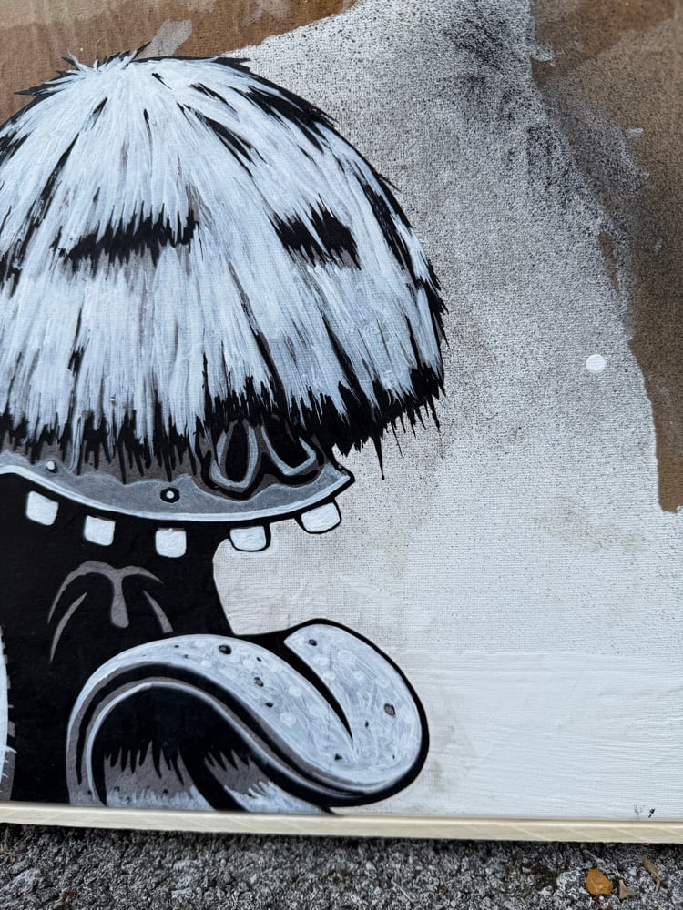 Acrylic, enamel, and, collage on canvas